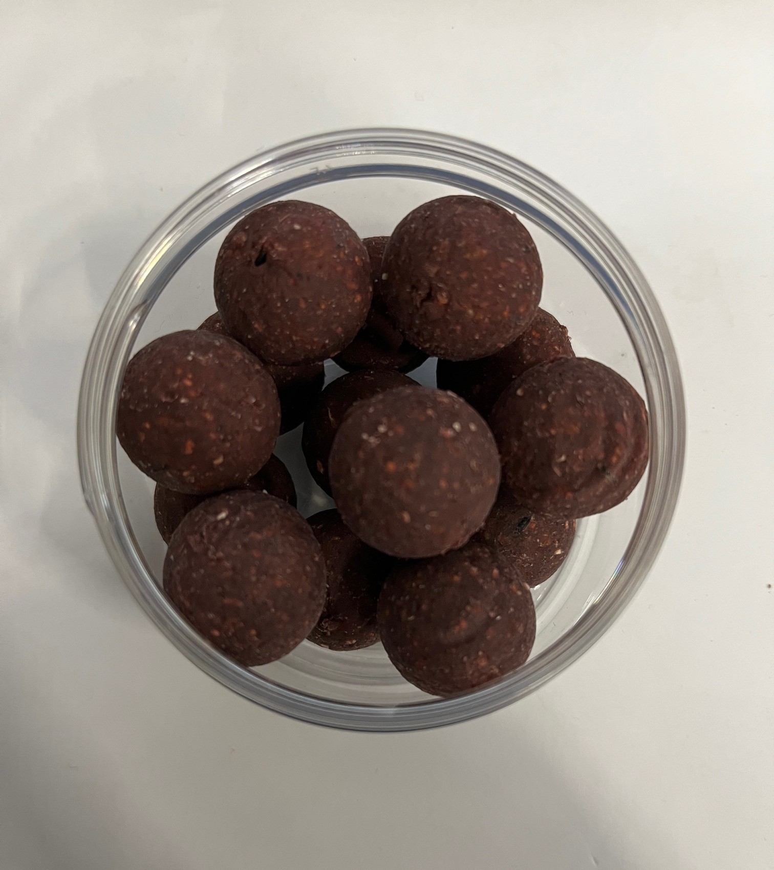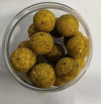 De hoofdbestanddelen van onze basismix van onze hardhookbaits zijn tarwemeel, CLO, Maismeel, sojavet, en ei-albuimine.