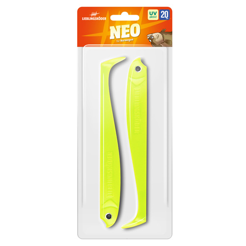 NEO is een neongeel softbait met een extreem hoge UV-activiteit. De hardheid van het rubber is de perfecte balans tussen zachtheid en robuustheid: zacht genoeg om door kabeljauw te worden ingezogen en gevouwen, maar sterk genoeg om vele worpen te doorstaan en stevig op de jigkop te blijven zitten.