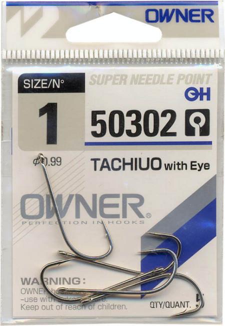Owner haken uit de 50302 TACHIUO met oog hebben een lange steel, een oogverbinding en een zilverkleurige afwerking.